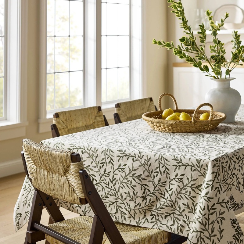 Dress up your table in natural style with the Green Leaf Tablecloth from Threshold designed with Studio McGee. This rectangular tablecloth is covered with a print of green leaves for a beautiful look. Made of 100% cotton fabric, it dries off quickly and helps you enjoy mess-free dining.