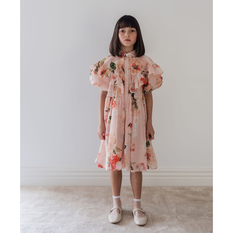 ENW110097931255-Short/Sleeve Peach Peony Collar Dress-Peach Peony Print