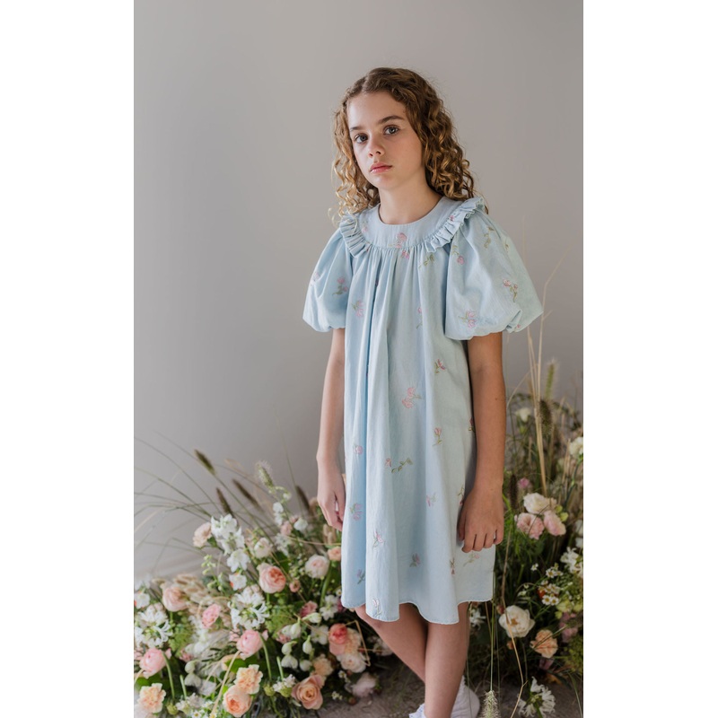 ENW110098501284-Embroidered Chambray Babydoll Dress-Pale Wash Chambray