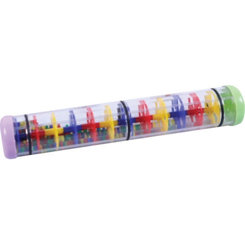 These clear plastic rain sticks arefilled with colorful beads that cascadedown the tube when turned upsidedown creating a rain-like sound. Thesmall size is great for young childrenand can be sanitized, while the largersize is great for children and adults.Colors may vary.