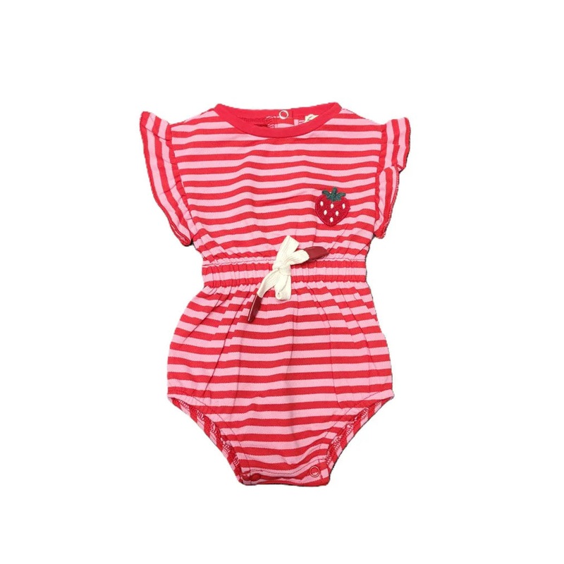 ENW1101618120-063C-Stripe Applique Baby Girls Romper-Red