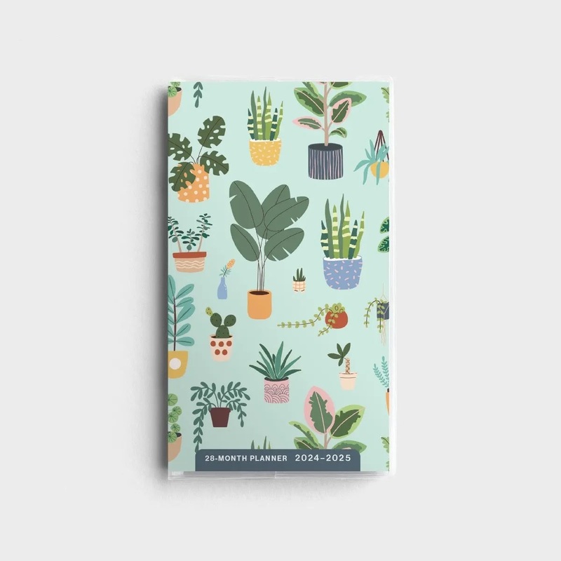 Plan your schedule on the go with this cheerful 2024-2025 28-Month Planner Succulent Love U0275. It is the ideal size to store in your purse or pocket. The laminated cover will keep your planner protected so that it lasts throughout the year. It features a variety of plants against a seafoam background. There are inspirational monthly Scripture verses to meditate on and memorize and there is additional space in the back of the planner for notes, addresses and more!