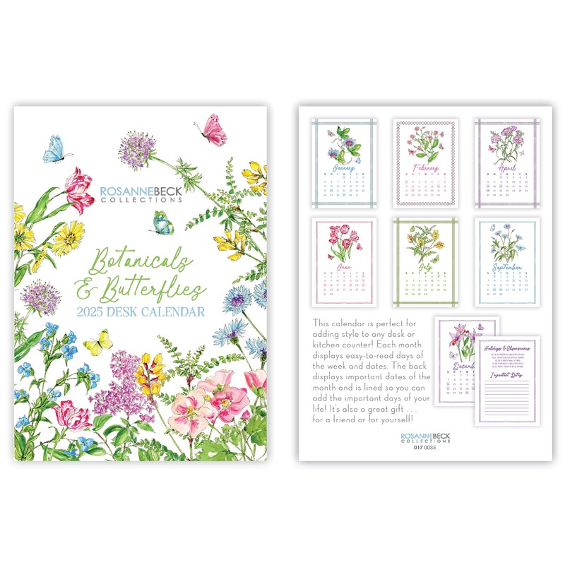 Our most popular item is back for 2025: the signature RosanneBECK Desk Calendar! Featuring Rosanne's beautifully watercolored botanicals & butterflies, painted especially for each month of the year.Calendar includes 12 cardstock cards for January 2025-Dece