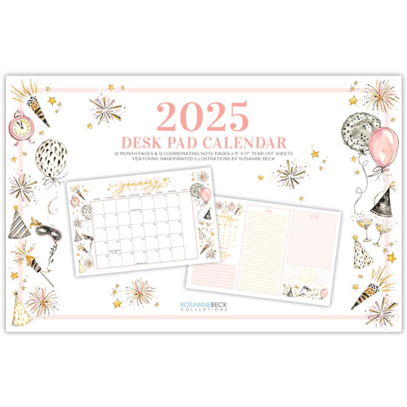 Introducing a fabulous new calendar product for 2025: the signature Desk Pad Calendar! A perfect addition to your desktop for a glimpse at what's upcoming, and a place to jot down notes. Featuring whimsical watercolor illustrations and icons, painted espec