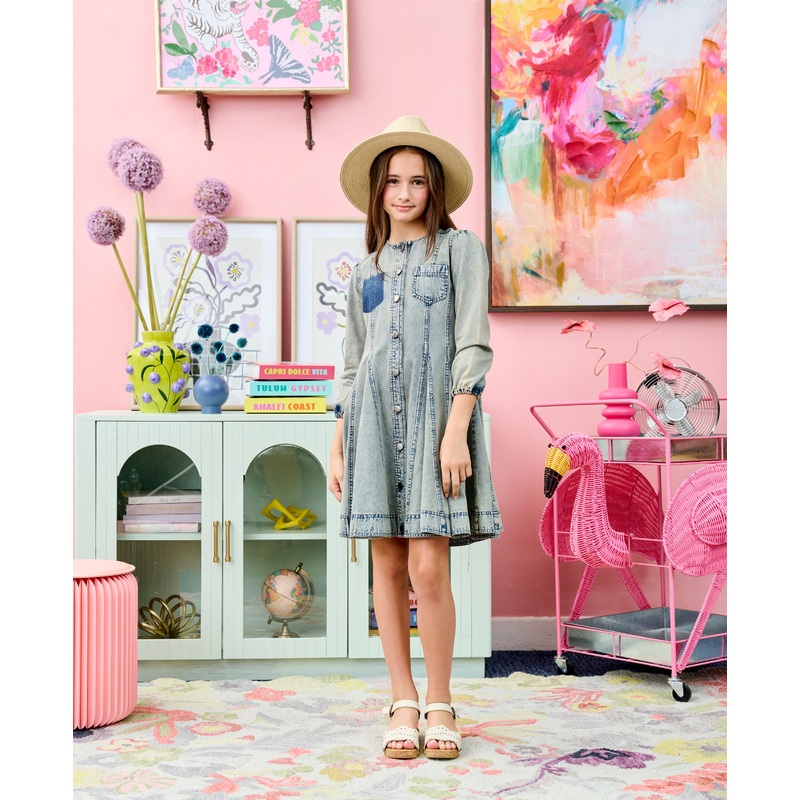 ENW110095652123-BUTTON DOWN PANELED DENIM DRESS