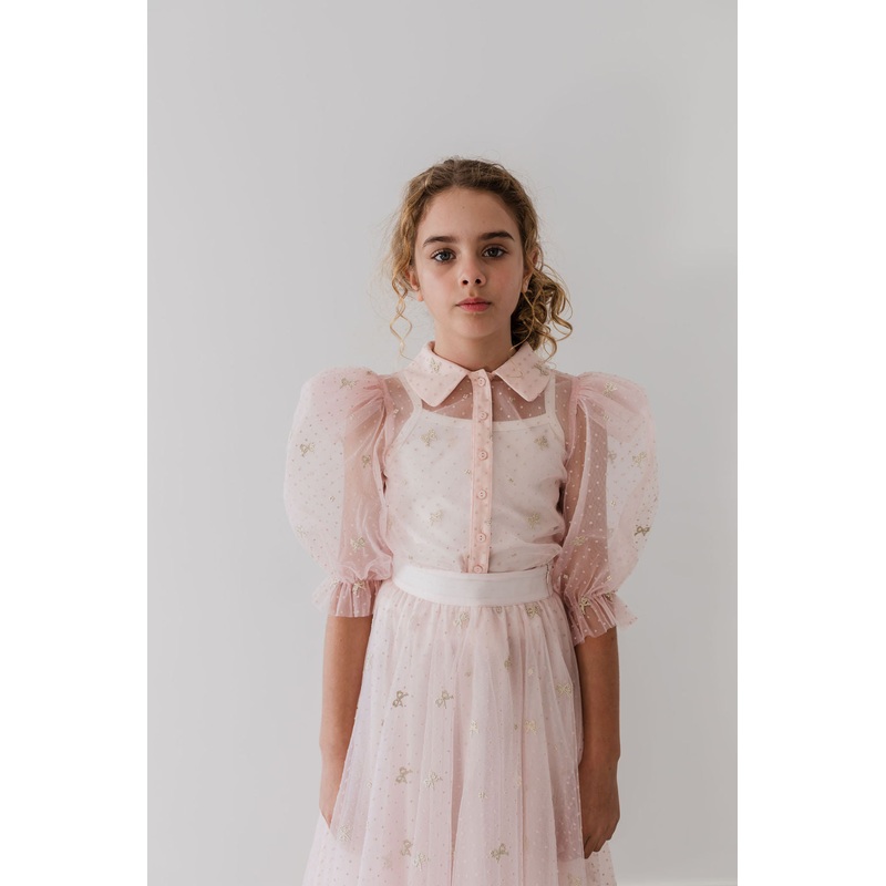 ENW110097782124-Embroidered Bow Tulle Top-Pink