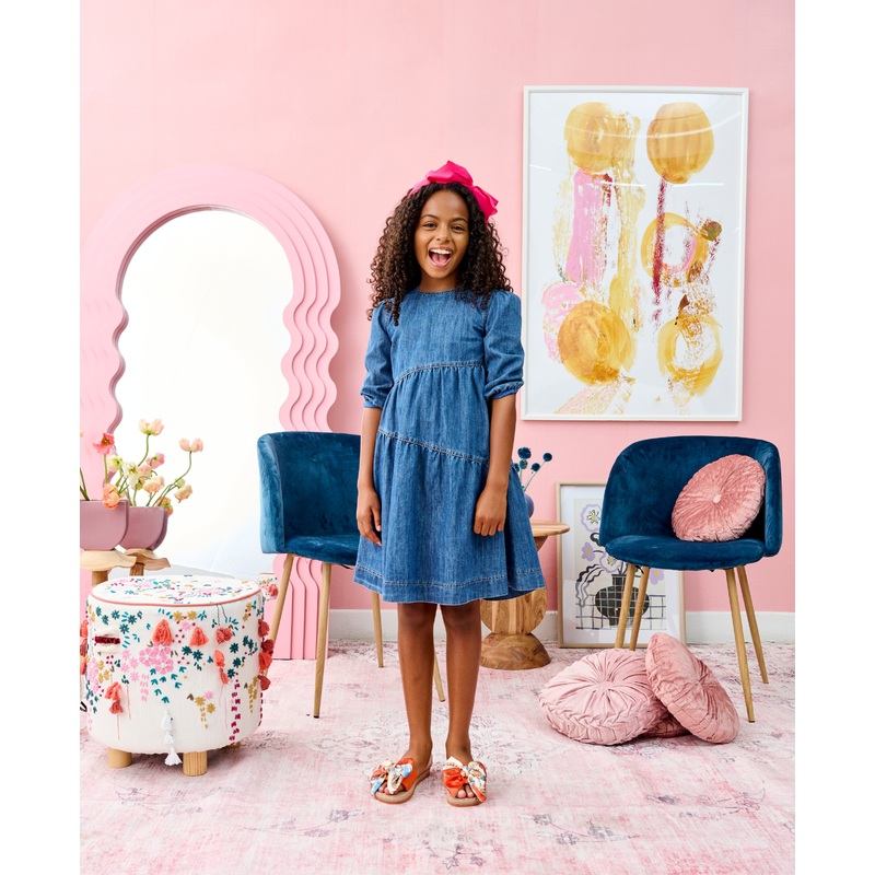 ENW110095892145-ASYMMETRICAL TIERED DENIM DRESS