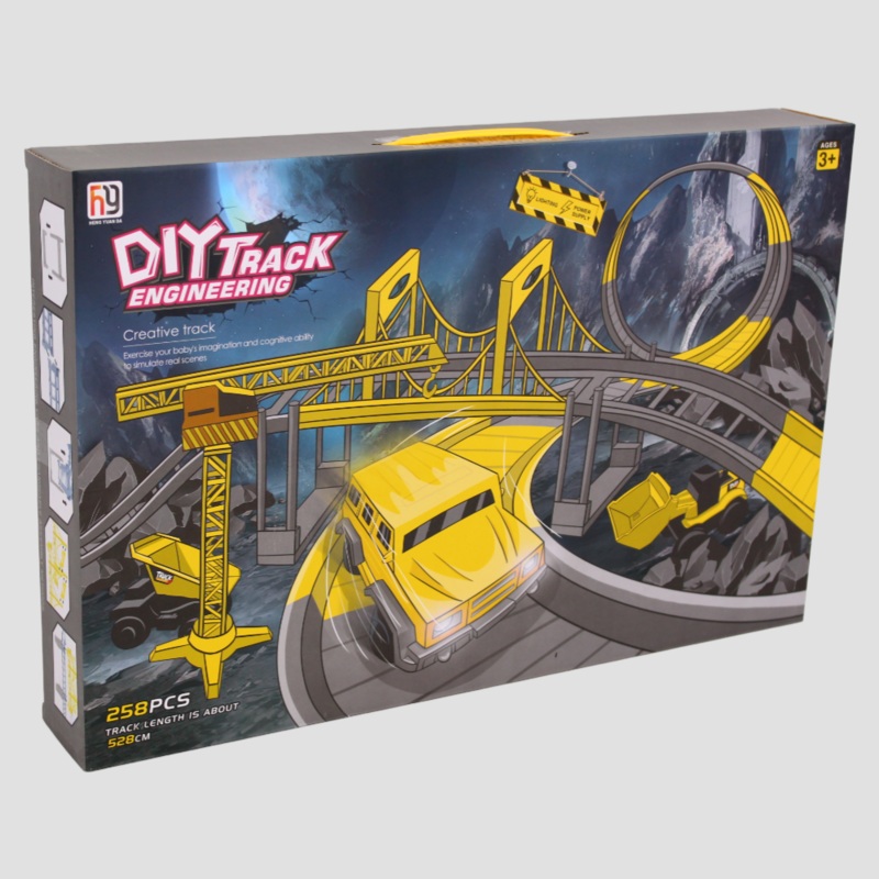 Let your childs imagination run wild with this exciting construction race track set! With 258 flexible track pieces and a construction vehicle, kids can design and build their own engineering road for endless fun.