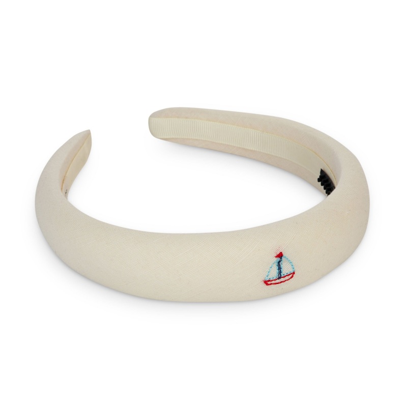 ENW1101715125S-Sailboat embroidered headband-Cream