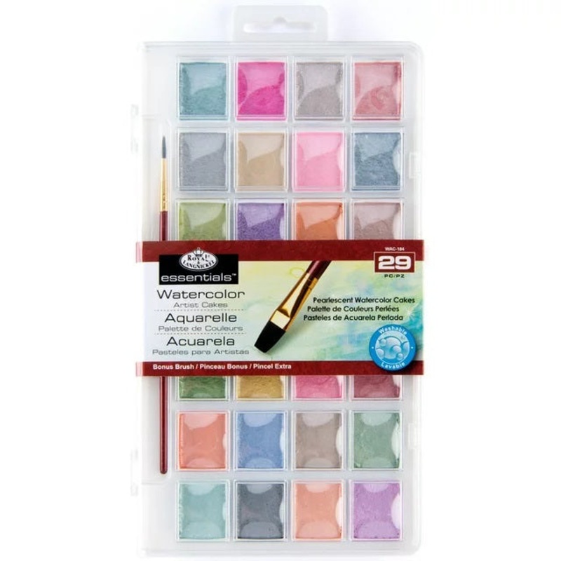 Spark your creativity with this set of 28-Color Pearlescent Essentials Watercolor Artist Cakes. These bright colors can be mixed or blended together to create endless variations. They are great for artists and beginners alike.Pearlescent watercolor cakesIn