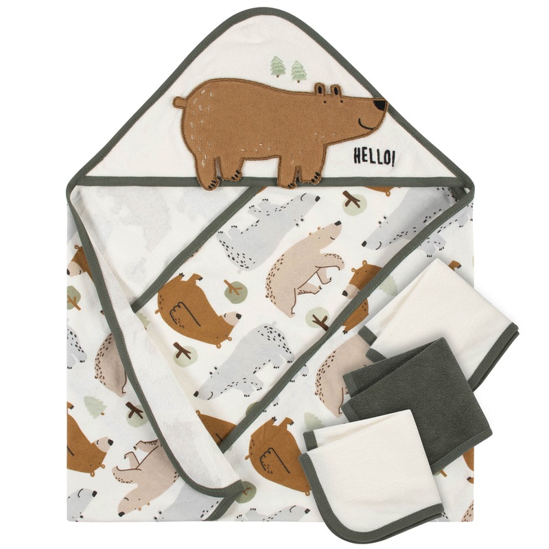 4-Piece Boys Bear Hooded Towel & Washcloth Set