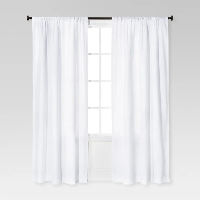 Transform your living space with this Farrah Curtain Panel from Threshold. The soft fabric-blend curtain panel comes in a solid color with a textured finish that mixes easily with a variety of decors, and the light-filtering fabric lets just the right amount of light in while enhancing privacy. The curtain is machine-washable for easy upkeep, and the rod pocket design lets you pair it with your choice of curtain rod for versatile styling. Whether you hang it in your living room, den or three-season porch, you’ll love the crisp look this panel adds to your space. Threshold: Looks like home, feels like you.