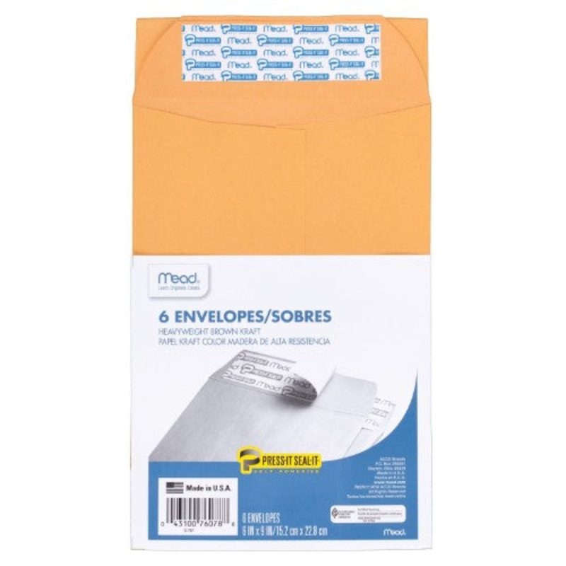 Send important documents in these 6x9 Press-It Seal-It Kraft Envelopes. These envelopes are made of high quality kraft paper and feature a removable tape that you can peel back to reveal the self-adhesive strip. Perfect for delivering small items or docume