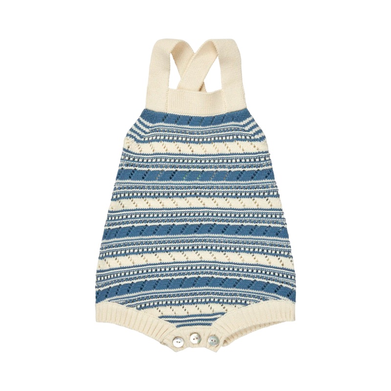ENW110101067125-BABY POINTELLE ROMPER-Ecru/Washed Indigo