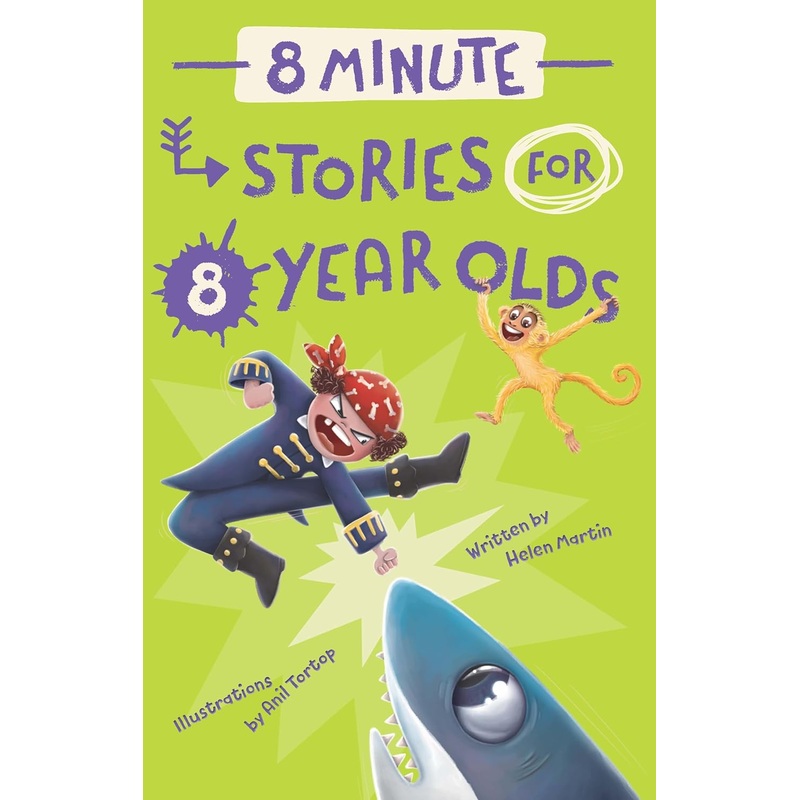 Monkeys causingMAYHEM, a RUDE and CRUDEparrot, a pack ofPOOINGpigeons.PARTY-CRASHINGturtles, aSPOOKYcave, the worldsWORSTlemonade. a kung-fuSHARK-FIGHTINGpirate, aSNOT DRAGON, aONE-EYEDbuilder, and much, muchMOREin this collection of eight-minute stories!