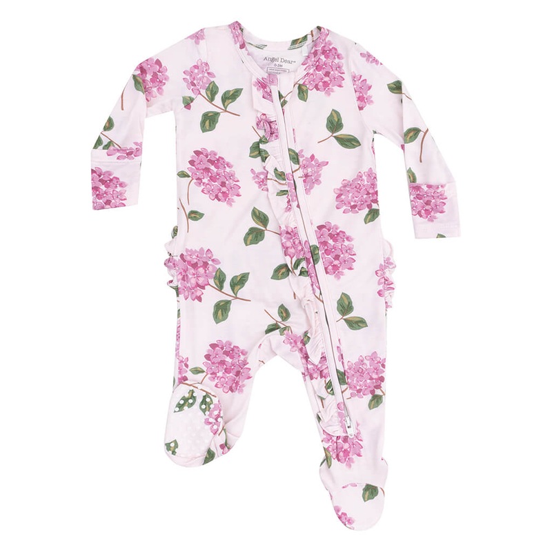 MLP310172626ADR 2 Way Ruffle Zipper Footie Hydrangeas Pink