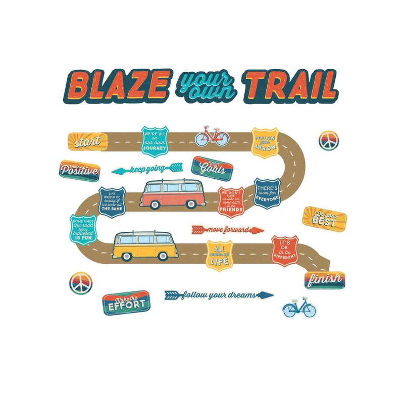 Adventurer Blaze Your Own Trail Mini Bulletin Board SetEncourage students to blaze their own trail with this 35 piece Eureka mini bulletin board set.Includes 3 Piece "Blaze Your Own Trail" header, 15 Inspirational Die-Cut Pieces (each measuring approximate