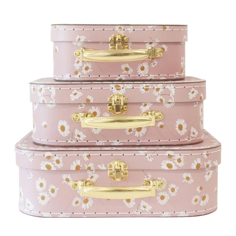 The Alimrose Carry Case Set in Daisy Days is a versatile solution for storage and fun. It has so many uses, take to play dates, store treasures or just elevate a rooms aesthetic.Features:Largest size 29cm x 19.5cm x 9.5cmMedium size 25cm x 18cm x 8cmSmall