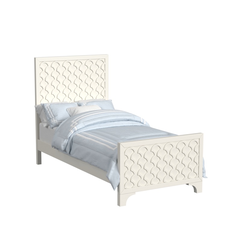 Amanda’s fresh casual feel with a shell motif give the group a unique appeal. All of the top drawers highlight this detail with picture frame moldings. The turned feet give the collection a transitional feel. The group is offered in two standard colors, Creamy White & Oyster Grey, as well as the 10 custom finishes.