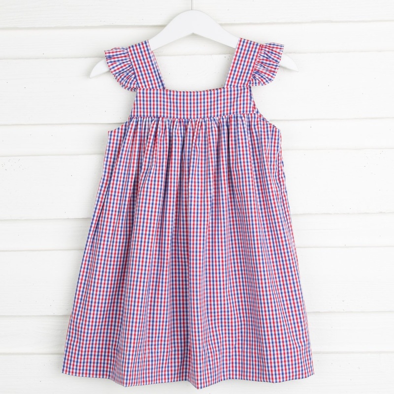 This summer dress gives us patriotic vibes! Our classic Amy style in a red and blue plaid.