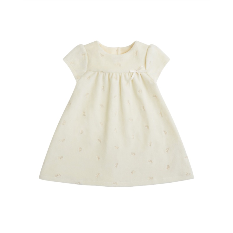 Princess Marie-Chantal of Greeces eponymous label is known internationally for its unmatched style and the quality of materialslike their organic, hand-picked Pima cottonwhich lies at the heart of their baby essentials and contemporary childrens clothing. The Angel Wing Velour Dress in Cream features delicate Angel Wing embroidered detailing in an all over design and a decorative ribbon bow. Designed with comfort and quality in mind, perfect for playtime or special occasions.