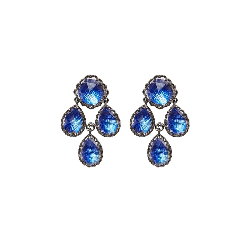 Inspired by antique Georgian jewelry and reimagined with an eye for modern style, Larkspur & Hawks signature foilingtechniquecovers silhouettes ranging from everyday stud earrings to dramatic five-strand necklaces. Timeless, feminine, and subtly glamorous, theAntoinette Girandole Earrings featuresparkling cascading white quartz.
