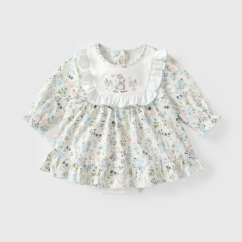 GWIL528534351Arrival Autumn Baby Girls Floral Long Sleeves Rabbit Pattern Embroidered Dress