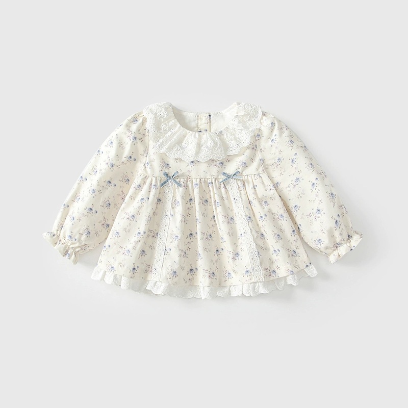 GWIL528532187Arrival Autumn Baby Kids Girls Floral Print Long Sleeves Beige Dress