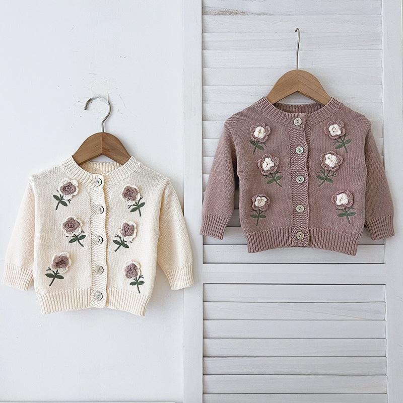 Arrival Baby Girls Comfortable Flowers Embroidery Pattern Knitted Long Sleeves Cardigan