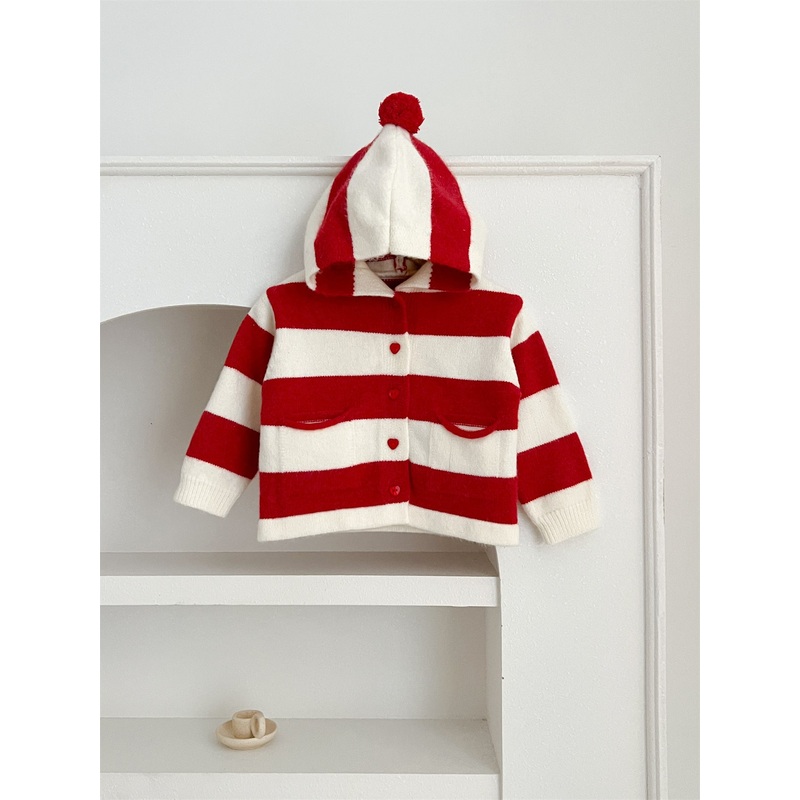 GWIL528536692Arrival Baby Kids Girls Striped Color Patchwork Single Breasted Knitwear Hoodie