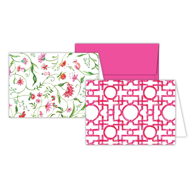 Asian Trellis – Pink Floral Stationery Notes
