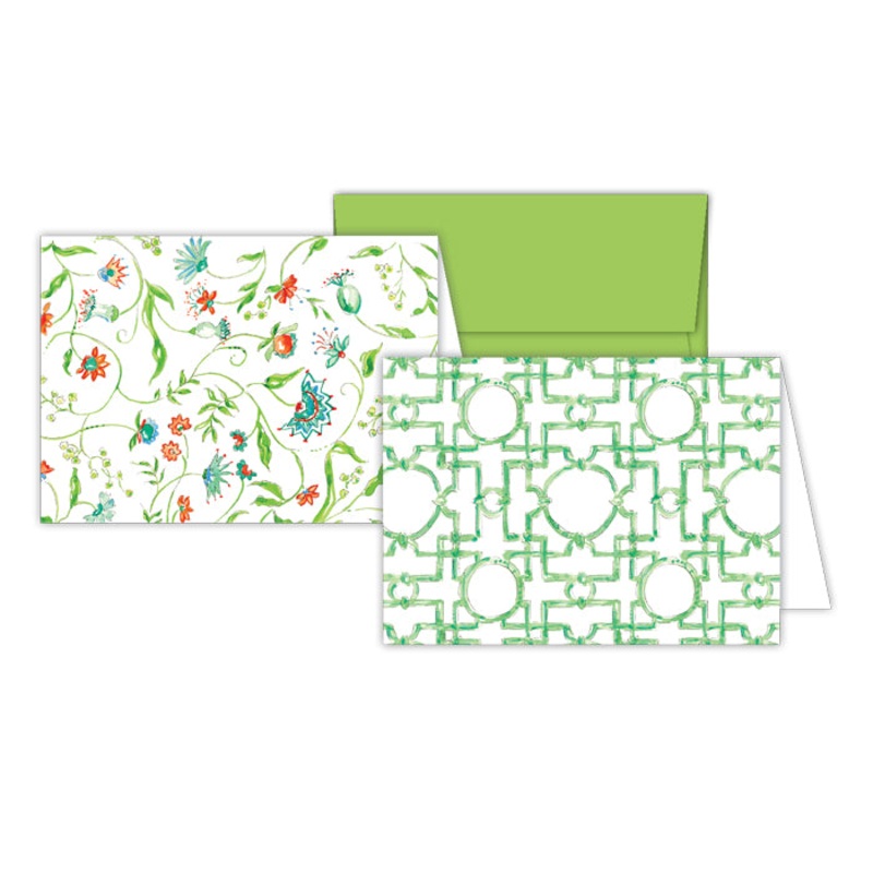 Two designs, 16 cards, 2 coordinating designs, in one box with a brightly colored envelope! This combo note set makes sending and receiving snail mail a delight for all. Bulk of 100 cards100 envelopesSize 5.5x8.5"Made in USA