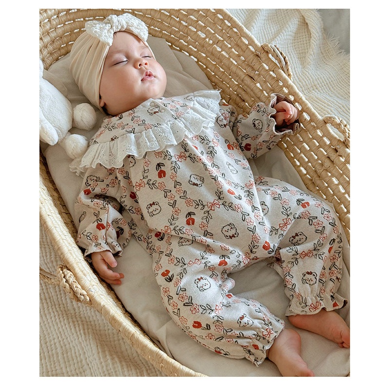 Dress your little one in cozy charm with this playful long-sleeve romper, perfect for autumn and spring. Featuring a simple floral pattern, it adds a touch of sweetness while keeping your baby comfortable and snug during cooler days. Easy to wear and adora