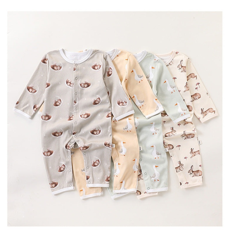 Keep your little one cozy and cute with this playful romper featuring simple animal cartoons. Perfect for autumn and spring, its long sleeves provide gentle warmth while allowing easy movement. Designed for both baby boys and girls, this romper combines co