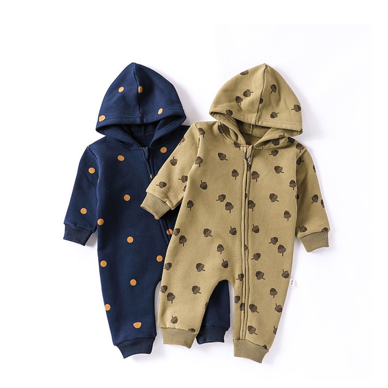 Keep your little one cozy and cute with this unisex zip-up romper, perfect for autumn and spring. Featuring long sleeves, a snug hood, and a thick fabric, its designed to keep babies warm during those crisp days. Easy to put on and take off, this playful r