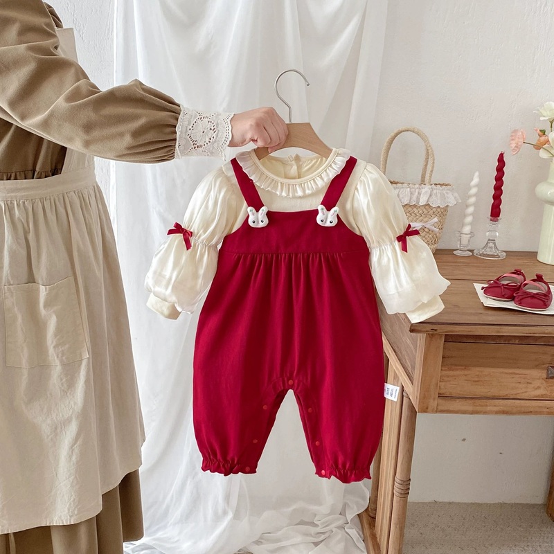 Designed for comfort and style, this romper features long sleeves with a charming rabbit cartoon pattern and tasteful color patchwork. Perfect for autumn, it keeps your baby girl cozy while adding a subtle playful touch to her wardrobe. The soft fabric ens