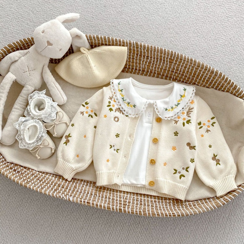 Keep your little one cozy and cute this autumn with this charming knitted cardigan. Featuring delicate flower embroidery and long sleeves, its perfect for playful days and crisp evenings. Soft and comfortable, it wraps your child in warmth while adding a t