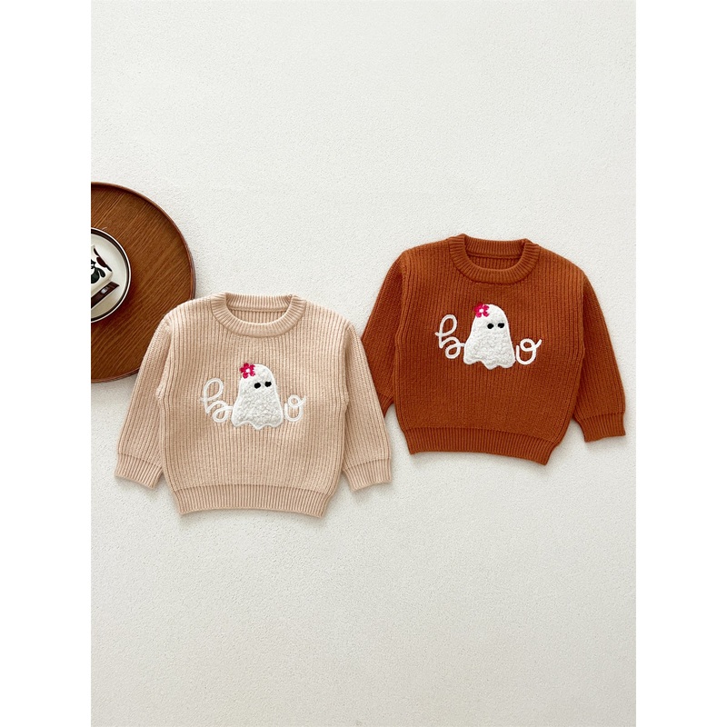 Get your little one ready for fall fun with this cozy, unisex pullover featuring a playful Halloween ghost pattern. Crafted from soft knitted fabric, it keeps kids warm and comfy during crisp autumn days. Perfect for trick-or-treating or casual wear, this
