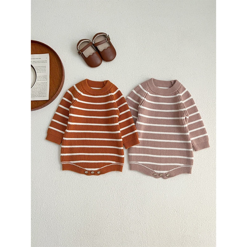 Wrap your little one in cozy charm with this Autumn Arrival unisex onesie. Featuring playful stripes and a soft knitted fabric, it keeps your baby snug and stylish during cooler days. The long sleeves and crew neck design offer gentle warmth, perfect for e
