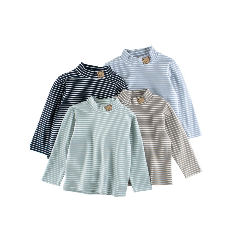 Keep your little one cozy and cute this autumn with this playful striped pullover. Featuring a charming teddy embroidery and a snug turtle neck, its perfect for chilly days and fun adventures. The long sleeves provide extra warmth while the soft fabric ens