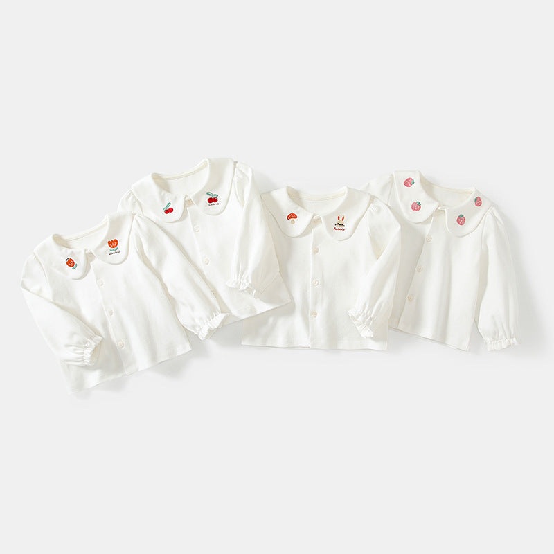 GWIL528537286Autumn Hot Selling Baby Kids Girls Long Sleeves Plain Single Breasted Shirt with Embroidered Collar