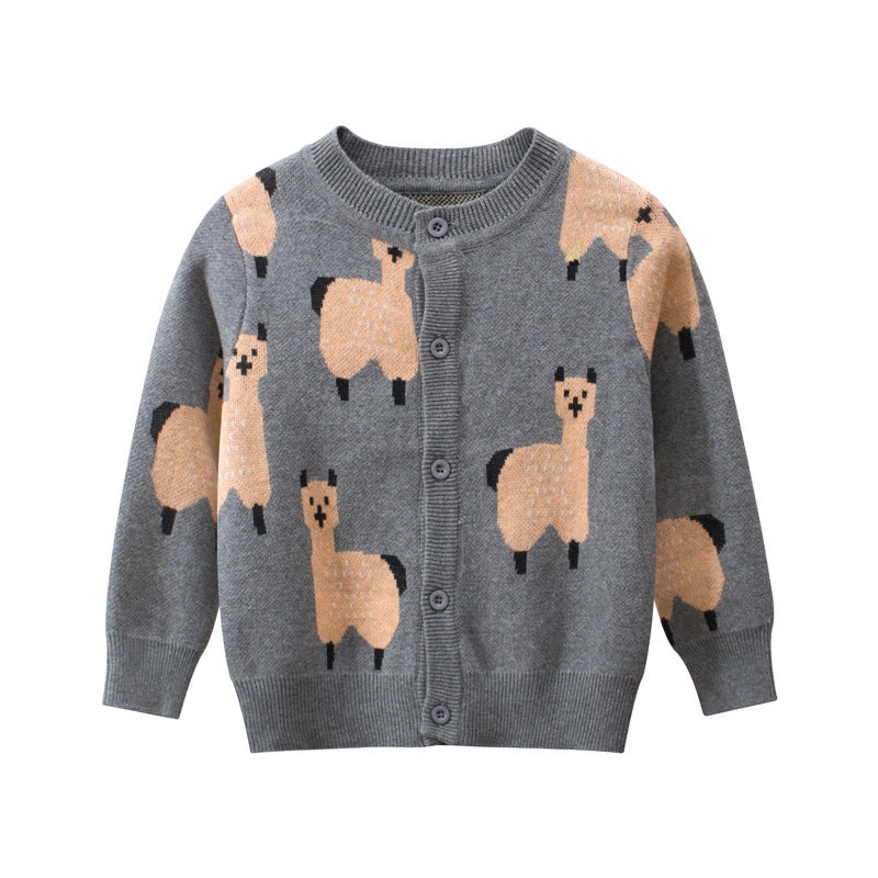 Let your little buddy flaunt their playful style with this knitted cardigan featuring an oh-so-adorable cartoon llama embroidered pattern, plus a button-front for effortless layering! Make this quirky wrap your go-to for cuddle-seshs and beyond.COLORGreyGE