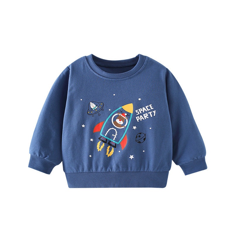 Make him blast off in this fun hoodie for baby boys! This out-of-this-world round collar hoodie featuring a cool cartoon planet pattern is made with 100% cotton, so it'll be sure to keep him comfy and cozy wherever he goes! You'll def be the hero in his ey