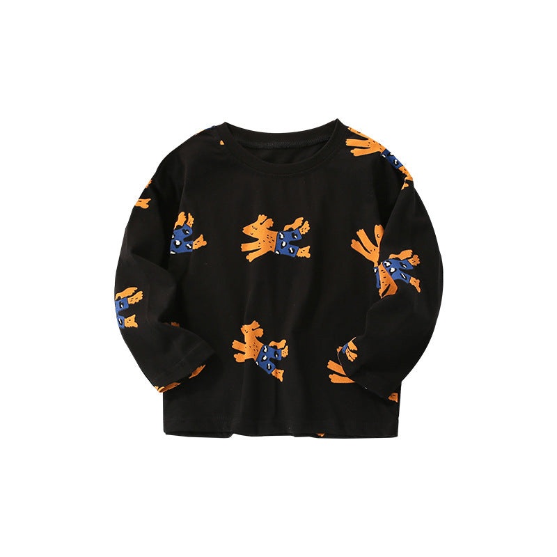 Baby Boy Cute Dog Print Pattern O-Neck Cotton Shirt