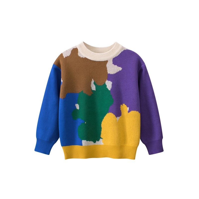 GWIL528534828Baby Boy Kids Color Patchwork Crew Neck Long Sleeve Thin Knitwear Pullover
