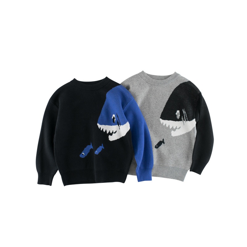 Keep your little one cozy and cute with this playful knit pullover featuring fun fish and shark patterns. Designed with a comfortable crew neck and long sleeves, its perfect for active days and cool evenings. Soft and snug, this pullover adds a splash of o