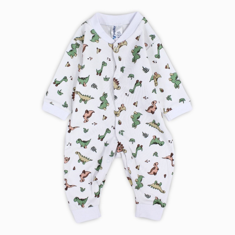 Soft, breathable, and perfect for playful days with a roar of comfort.Why Parents Love It:Made from 100% cotton gentle, soft, and breathable on babys skinFootless design offers freedom of movement and extended fitFun dino print on white adds a playful and