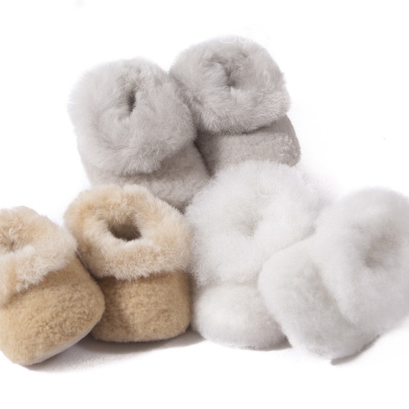 These adorable, handmade 100% Alpaca and Merino Fleece booties make the perfect baby shower, christening or layette gift to add that warmth and snugness to little baby toes.