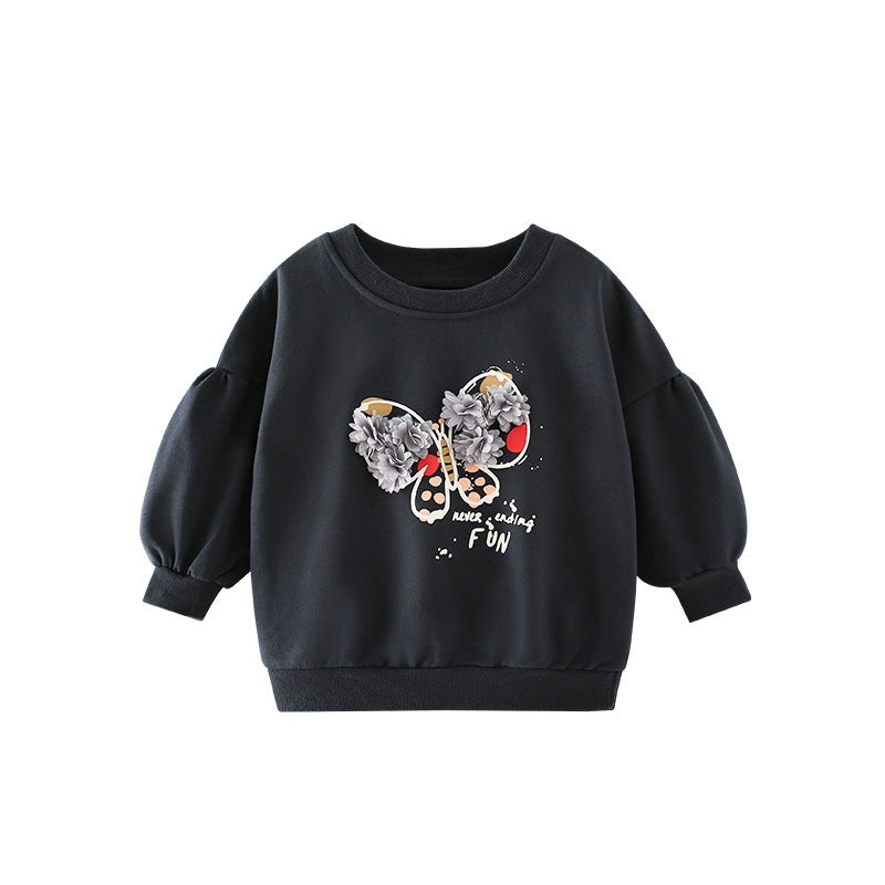 This stylish and comfy hoodie is perfect for showing off your little one's unique style! The beautiful butterfly patch, 3D flower details, and puffy sleeves make this piece truly one-of-a-kind. Is your little girl ready for a bold new look?COLORBlackGENDER