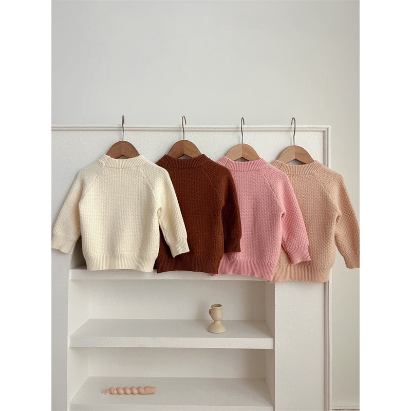 Introduce your little one to the cold weather in style with our Baby Girl Knitting Sweater. Crafted in four versatile colors and featuring a round collar, this solid pullover is both warm and chic. Made with high-quality materials, it's perfect for keeping